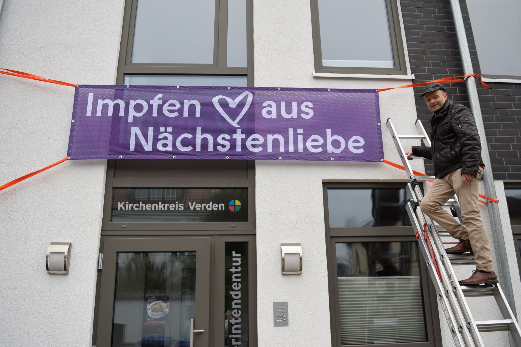 …so ist es auf den Transparenten zu lesen, die in diesen Tagen an der Superintendentur in der Georgstraße, am Stadtkirchenzentrum, am Domgemeindezentrum, am Begegnungszentrum St. Nikolai und der Suchtberatungsstelle aufgehängt werden. An der Aktion beteiligen sich mehrere Kirchengemeinden im gesamten Kirchenkreis Verden, bei denen Plakate in den nächsten Tagen folgen werden.