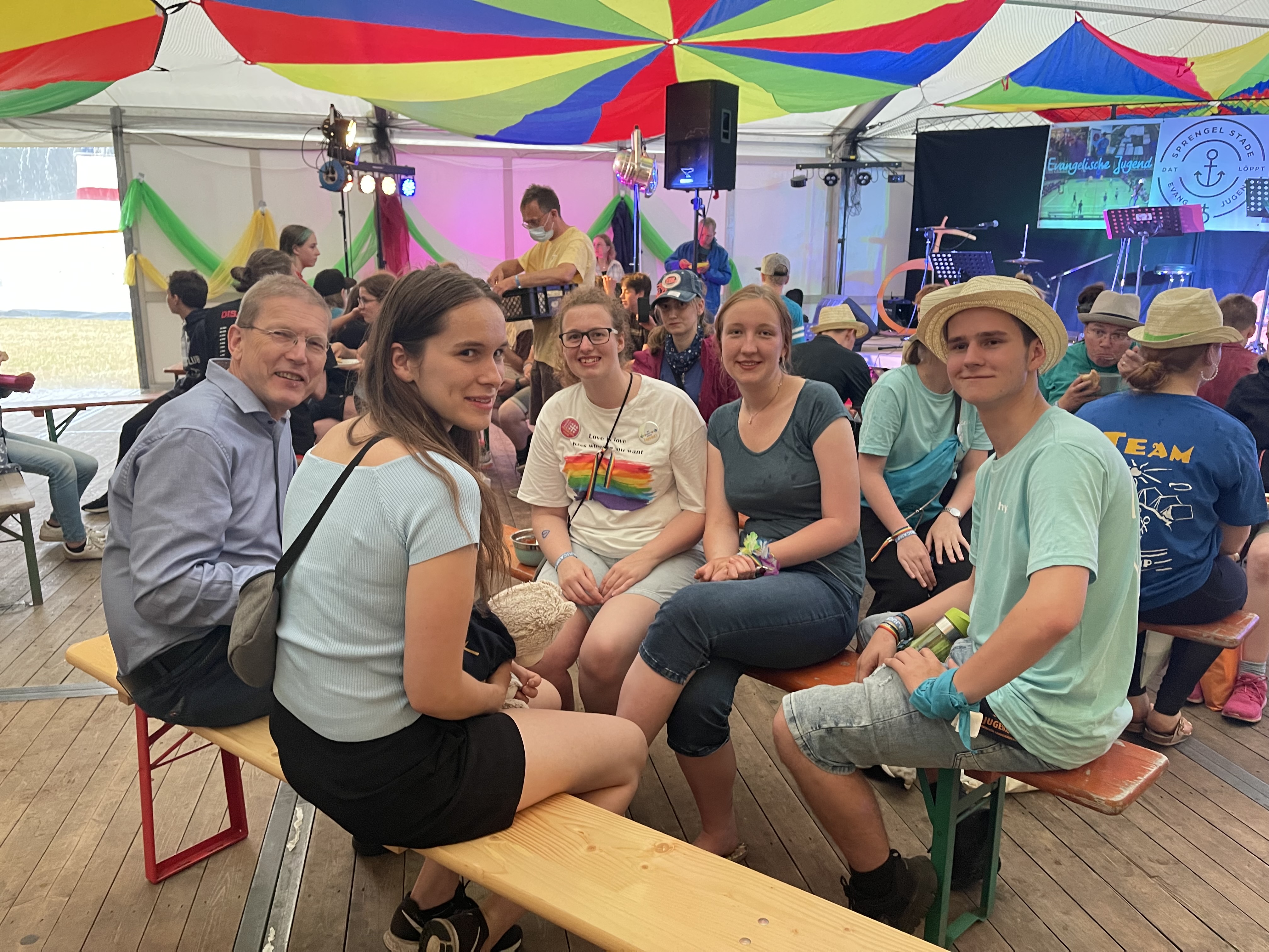 Auch Rike Schröder ist vom Landesjugendcamp begeistert. „Eines der Highlights war am Freitagabend die Silent-Disko im Zelt unseres Sprengels Stade“, so die 23-jährige Studentin, die aktuell ihren Bachelor of Engineering macht. „Über Kopfhörer waren drei verschiedene Musikrichtungen zu hören und jeder konnte zu einem anderen Song tanzen. Dass hat allen viel Spaß gemacht. Unser Zelt wird zudem komplett mit Solarstrom betrieben. Und selbst die Regenschauer störten nicht.“ Schröder ist als Teamerin im Kindergottesdienst und im Konfirmandenunterricht aktiv und engagiert sich im Sprengel-Jugendkonvent.