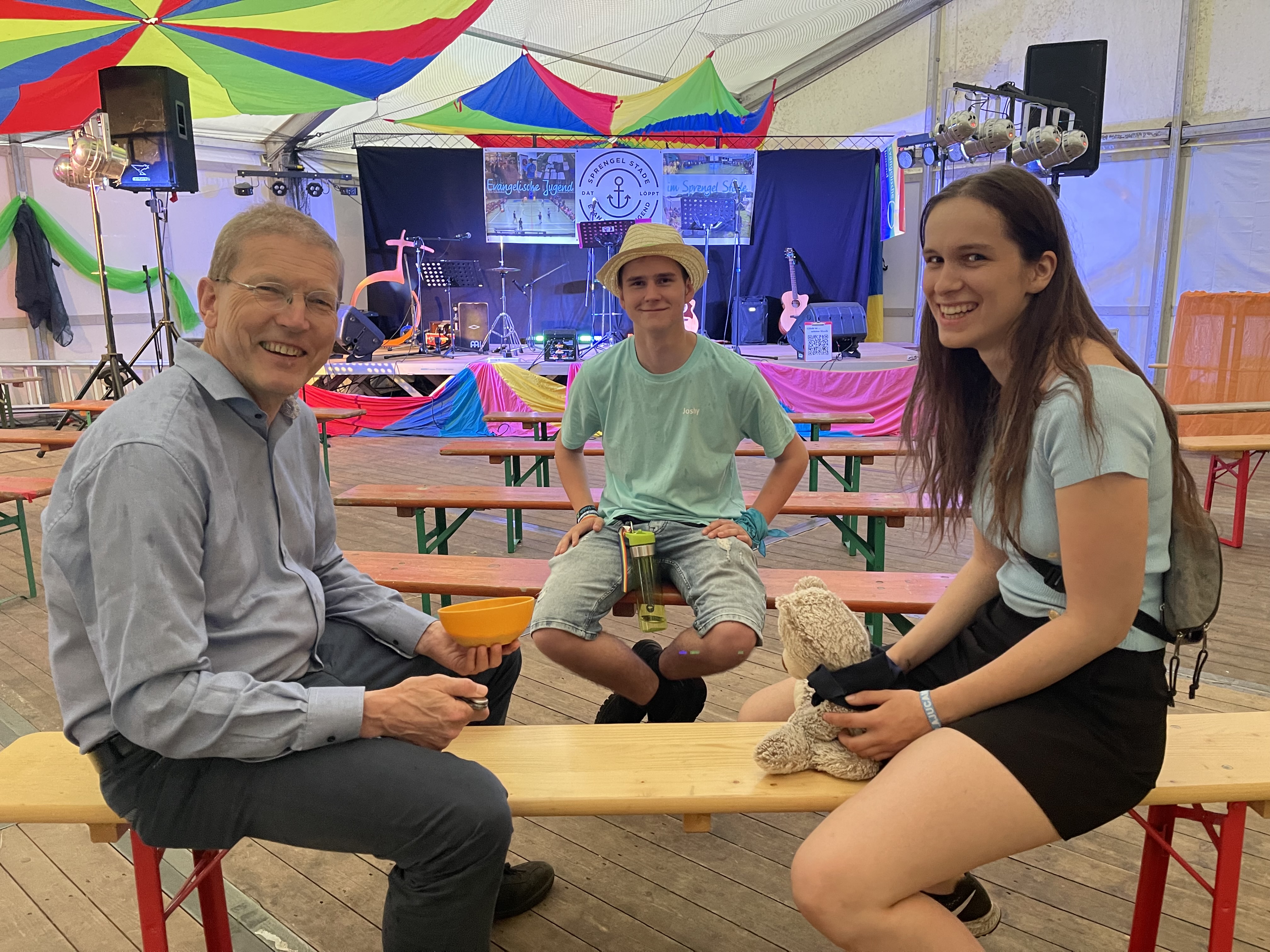 „Die Stimmung auf dem Camp ist richtig gut“, sagt der 18-jährige Joshua Deckert. „Die Freude und der Spaß ist in allen Gesichtern hier zu sehen. Denn auf dem Gelände gibt es viele Dinge zu entdecken und für jeden ist etwas dabei.“ Es gebe ein vielfältiges Programm mit mehr als 200 Einzelveranstaltungen. „Es macht einfach die Mischung aus Workshops, Konzerten, Diskussionsrunden und spirituellen Angeboten. Vieles davon von uns Jugendlichen gestaltet.“ Deckert, von Beruf Gesundheits- und Krankenpfleger, leitet als Teamer selbst Kinder- und Jugendfreizeiten und sitzt in der Landesjugendkammer, dem höchsten jugendpolitischen Gremium der hannoverschen Landeskirche.