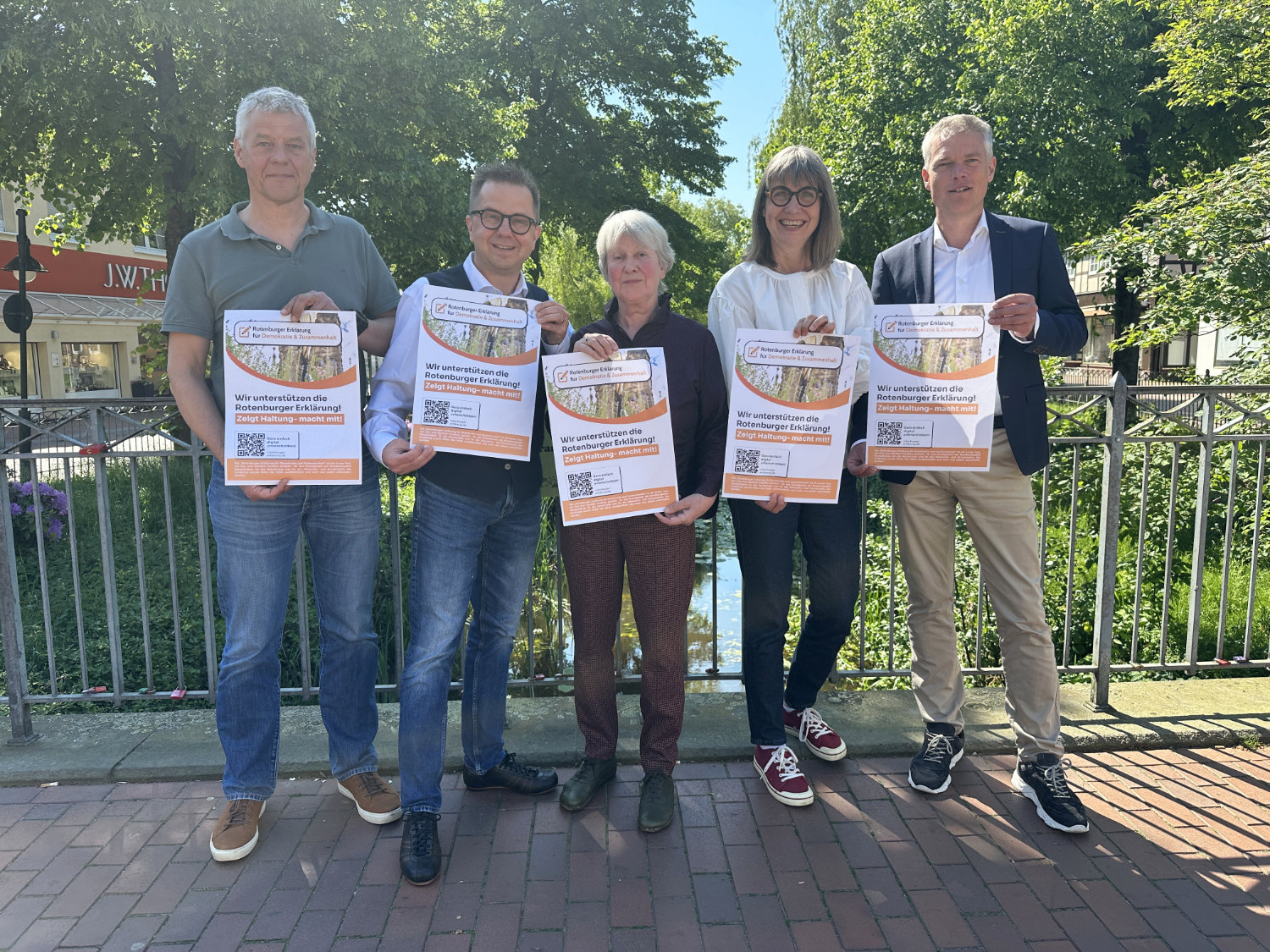 Möglich ist eine Unterschrift zum einen über die Webseite www.rotenburger-erklaerung.de. Es gibt die Auswahlmöglichkeit, dass der eigene Name nicht öffentlich dort erscheint – die Stimme zählt trotzdem! Außerdem sind alle eingeladen, „Gesicht“ für die Demokratie zu zeigen, indem sie ein Foto, Logo und/oder Statement hochladen.